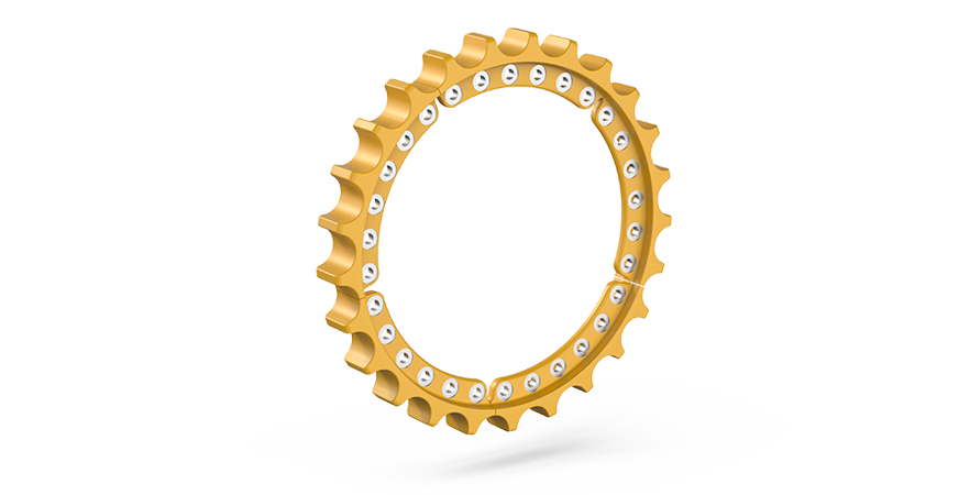 - Sprockets for mining dozers has a segmented design for easier maintenance.